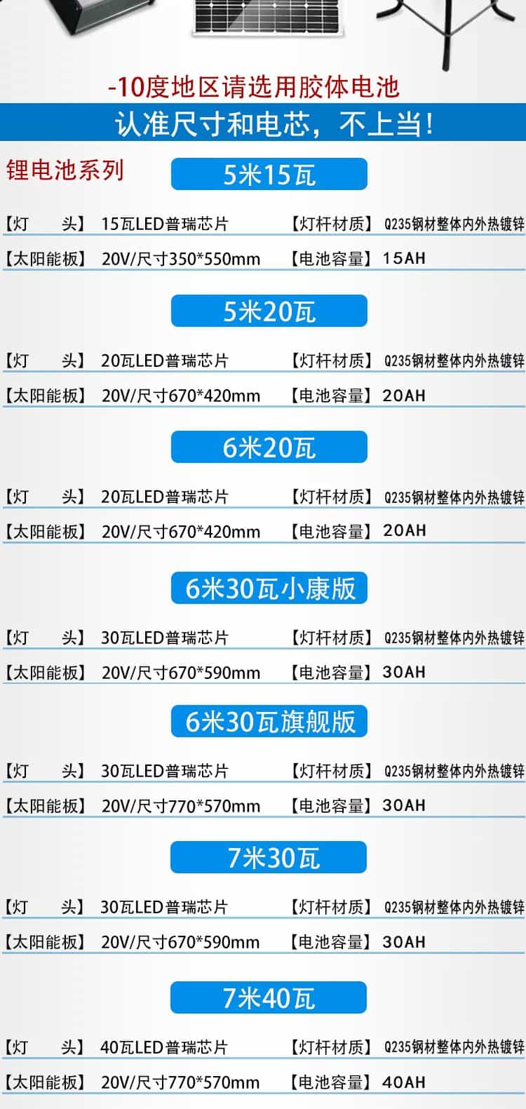 常規(guī)鋰電池太陽能路燈價格表